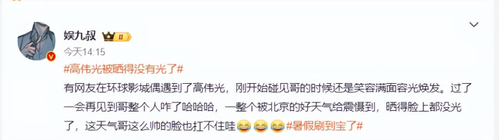 高伟光一副很茫然的状态站在阳光下,连网友都忍不住调侃: