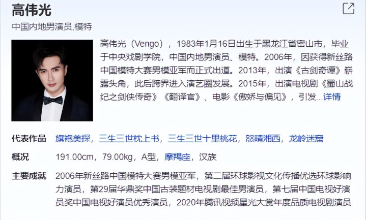 从中戏毕业后,高伟光签约杨幂的嘉行传媒,正式开始演员生涯。